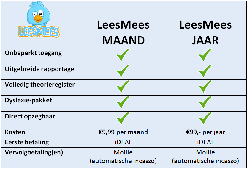 Er is keuze uit twee soorten abonnementen: LeesMees MAAND en LeesMees JAAR.